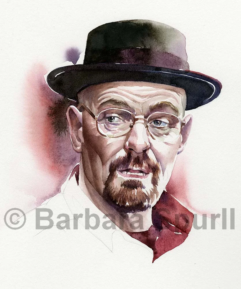 watercolour portrait of Bryan Cranston by Barbara Spurll